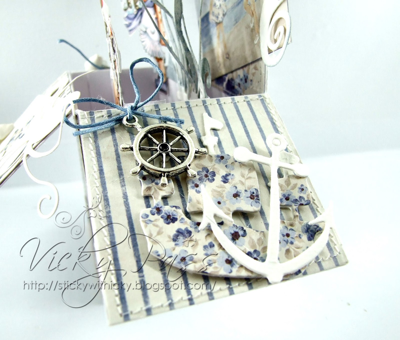Vicky this is utterly gorgeous hunny! There are so many delish details on this fab box card. I love the design and that wee seahorse, swoon, I missed that first Doohickey mag' release, I hope they'll release him later on again, as he's just the cutest! Love all the fabby tags and extra details, the wee floral tops on the white tags look delish! Such a fabby make hun. Hugs, Wends xoxo