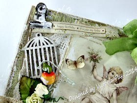You can just see a bit of Magnolia's 'Lovely Fence' peeking out behind the flowers, I also added the 'Cat' from Magnolia's 'Paris Nights' die. The bingo card & love sentiment are Whimsy which I got a long time ago from Bunny Zoes. The 'Bark Heart' & metal 'Love' clip are from LLC. The pink doilies & pink seam binding are from my stash. I also added white gesso here & there.